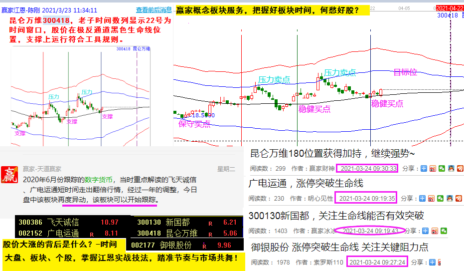 周二(3月23日),贏家VIP學員群提前解讀數字貨幣,今日該板塊個股紛紛大漲,正式學員先人一步把握市場機會!股價大漲的背后是什么?——答案:時間。當你懂得敬畏、付出學習,做好跟隨,不論大盤、板塊還是個股,就可以做到踏準節奏與市場共舞。關注贏家江恩的技術和消息,請先提升自己的投資意識。好股、好的買賣分析、好的操盤技術,你需要的,贏家都有。合作詳情,聯系管理!