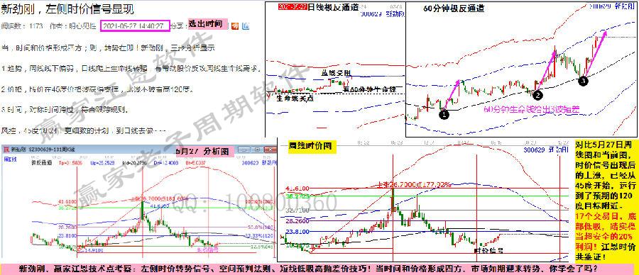 新潔能,時間點+生命線啟動的快速拉升,7個交易日漲幅超40%。藍線在,看紅線,股價還會有新高度。回看這一路的分析與跟進,4月初第一次選出到達315度構成高拋點,15日3.382時間點再次選出,到達315度后直接高開躍過?為什么?還記得江恩4次法則嗎?315度站上就會迎來新高,又為什么?有心人思考。好股票的走勢,就像一副藝術品。借助江恩時空專業的視角,直觀展示隱藏在k線中的完美秩序。