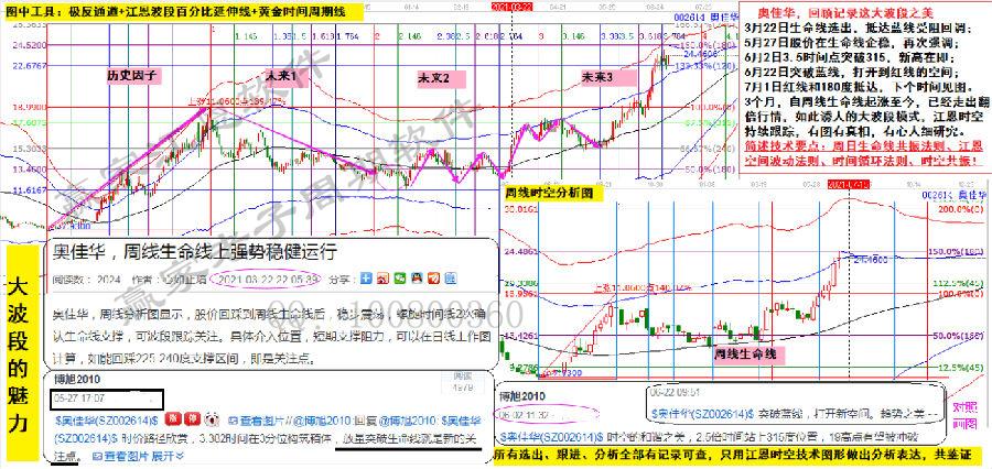 對照天奇股份,5月10日按照周日生命線共振法則選出,先看極反通道,周線在生命線上穩健運行,日線5次在生命線獲得支撐,當日線和日內周期修復出一致性信號后,那就是:高開高走迎來快速拉升。再看5月20日分享的空間律動圖,歷史對未來的主宰,有序的低點高點重復又重復!180度,240度,每個臺階站上去都有他的屬性和意義。再有時間因素,拿出工具自己畫圖找尋吧!