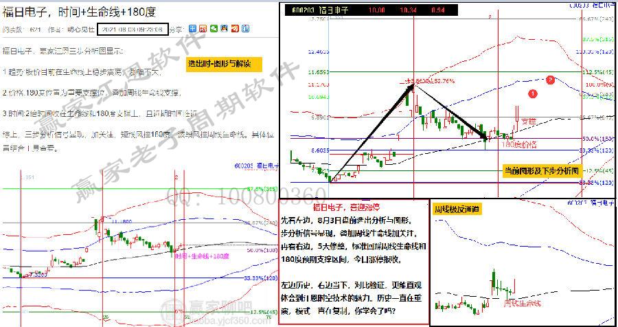 7月29日盤前選出,時價有序和諧,股價在生命線上符合規(guī)則。之后,穩(wěn)步上攻抵達藍色上軌線和315度壓力區(qū)。受阻藍線震蕩洗盤不可避免,百分比240度支撐及日線60分鐘生命線支撐,均是短線關注信號。同時:8月12日,5分鐘、15分鐘、30分鐘及60分鐘同步站上生命線形成日內(nèi)共振信號,今日強勢封板直接漲停突破藍線,打開新空間。