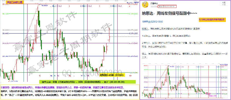 納思達,5月20日本輪最低點選出,3倍時間+45度價格引發(fā)這波上漲,2個多月漲幅達60%~~~回顧對比5月20日和當前的圖形,還是這組時價線,但“低點”已經(jīng)赫然留在那里。周線進入3.382時間窗口,空間上225-240度為壓力區(qū),這里能否再度突破,打開到315度的空間,拭目以待。