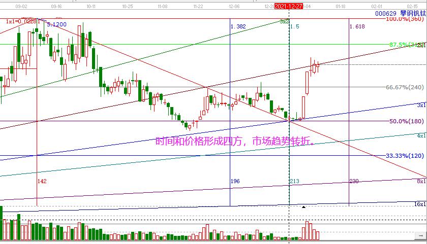 12月27日時間窗口,股價到達180度分割位支撐,時間+價格,形成四方,市場轉勢迫在眉睫,這是一個標準的時價四方信號,可借鑒學習。
