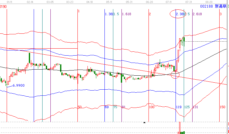 第一:依據(jù)贏家江恩分析系統(tǒng)趨勢工具極反通道:002188,此票在7月17日縮量回調(diào)生命線在生命線獲得支撐,依據(jù)極反通道操作規(guī)則,生命線最佳介入點(diǎn),