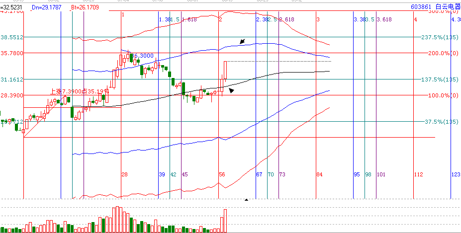 當前大盤在生命線上維持震蕩, 由于近期量能未能持續放大,因此,震動走勢延續,個股操作難度不小,今天盤中銀行、地產等權重股再次拉盤上漲,但整體量能依舊未能有效放大,后期走勢難免反復,這對我們選股要求很高,因此,在后期的選股中,仍然是以生命線附近的股票為首要參考對象,結合價格及時間因素做好優中選優,對于今天操作的白云電器(603861),我們做下簡單的解析。