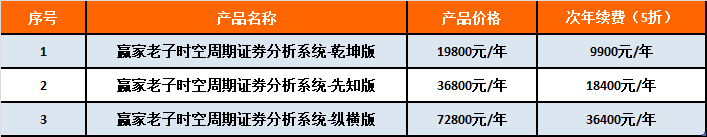 《贏家老子時空周期證券分析系統》于2021年4月8日正式上線,共分為3個版本,具體收費如下: