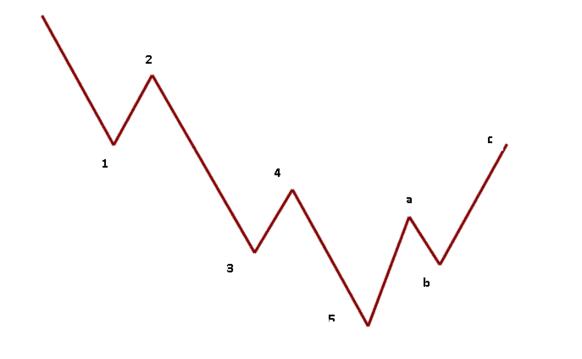 例如標準下跌,包括五浪的下跌(五段行情)就是一個完整下跌。上圖從A到F就是一個完整的五浪下跌示意圖。