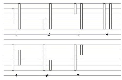 包含關系也就是一K線的高低點全在另一K線的范圍里,可以用下邊圖中的7種形態表示: