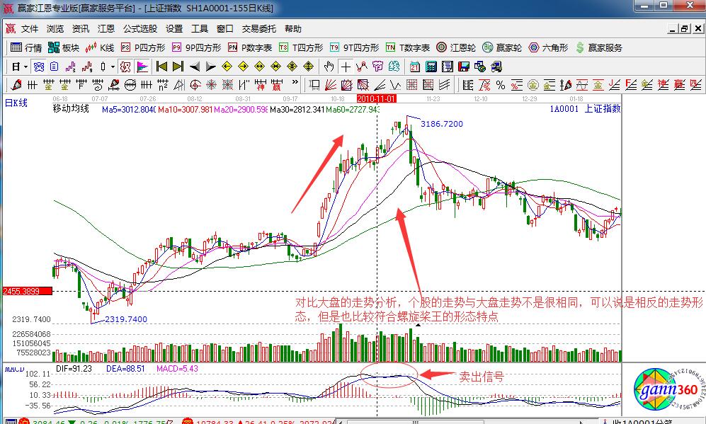 對于螺旋槳王的K線走勢,運用實例進行說明可以通過歷史個股進行分析: