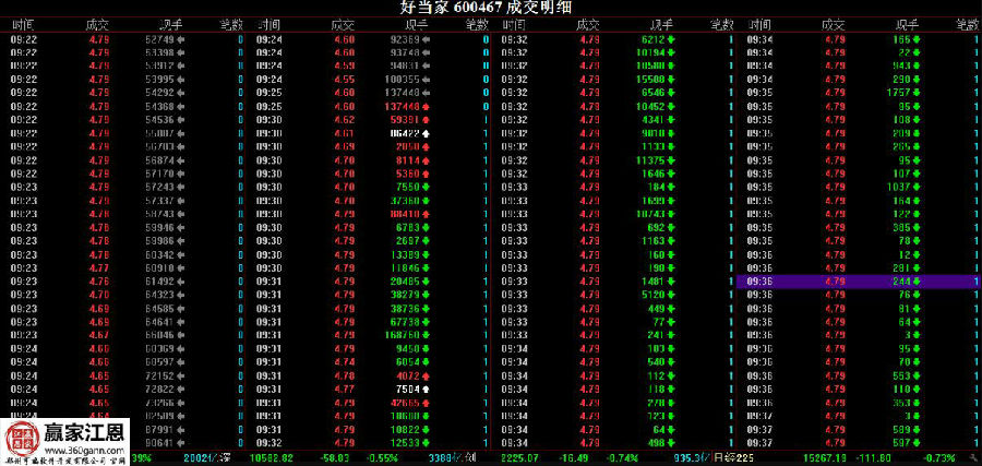 所謂的快就是快速找出快速掛單。在每日9:26分左右漲跌停龍虎榜上找,若有符合買進(jìn)條件,然后立即以漲停價掛單買入。還是以好當(dāng)家為例,下圖是好當(dāng)家的成交量明細(xì)。