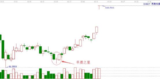 于十字星組合而成的k線組合是“早晨之星”和“黃昏之星”早晨之星預示著下跌趨勢的止跌反轉向上,黃昏之星,預示著頂部降臨的警示信號。