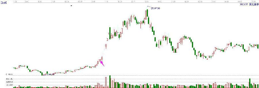 2.上漲中期出現(xiàn)十字星