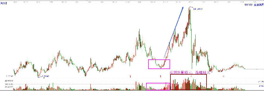 成交量圓弧底形成預(yù)示著上漲行情的來(lái)臨,而圓弧底成型之后的成交量大小則決定著后市行情的大小,如果成交量圓弧底之后的成交量大,則行情強(qiáng),漲幅大;如果成交量圓弧底之后成交量小,則行情弱,漲幅小。