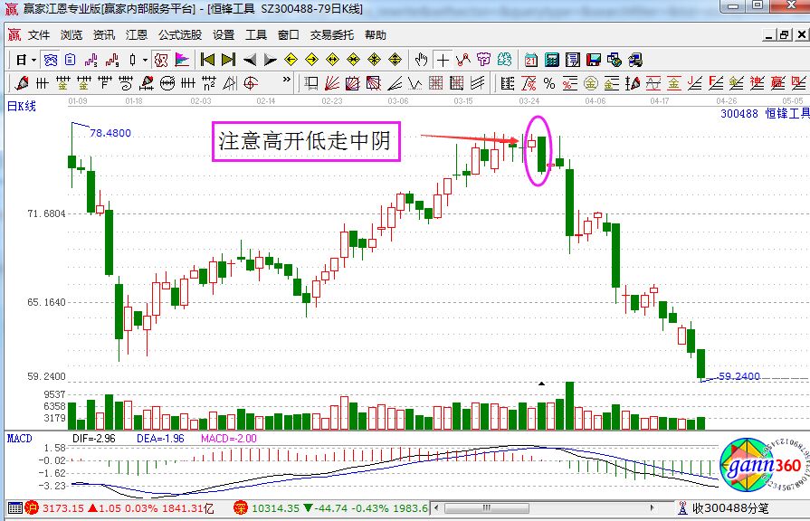 4.注意高開低走中陰線