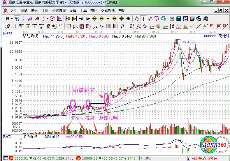 從上面的內(nèi)容,我們就可以得到,當(dāng)金蛤蟆右爪與60日均線接近部位的時(shí)候大膽買入,特別是出現(xiàn)量芝麻點(diǎn)的時(shí)候更應(yīng)該買入。當(dāng)股價(jià)沖過(guò)金蛤蟆眼睛的瞬間介入,此時(shí)整段漲勢(shì)已經(jīng)確認(rèn),只是價(jià)位稍微高一點(diǎn)。