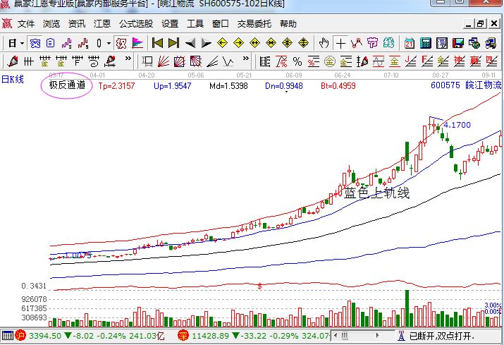 投資者如果能夠很好的把握這種走勢(shì),獲得在后面的加速上揚(yáng)的利潤(rùn)也是非常有可能的,當(dāng)然可能有的朋友對(duì)于此形態(tài)覺得還是有一定的風(fēng)險(xiǎn)的。當(dāng)然結(jié)合極反通道指標(biāo),我們可以看到此時(shí)的弧度表現(xiàn),主要是支撐線是在藍(lán)色上軌線的,而且股價(jià)是處于強(qiáng)勢(shì)區(qū)域中的,所以投資者在進(jìn)行買賣分析的過(guò)程中,可以依據(jù)藍(lán)色上軌線和紅色上軌線來(lái)進(jìn)行判斷阻力和支撐。