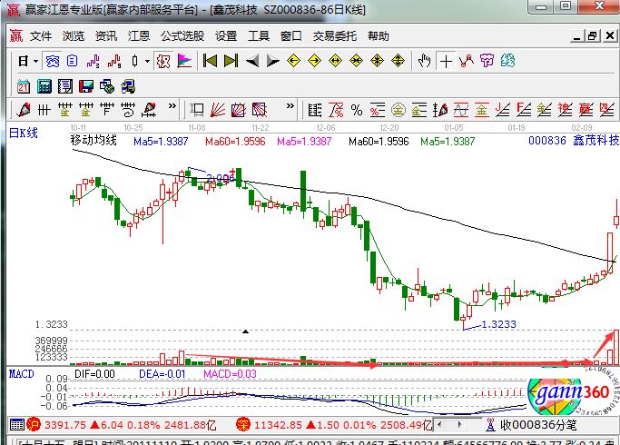 投資者在使用這個戰法的時候,首先要把 均線系統設定為5日、60日線,兩條。在股價突破60日線的的當太難早盤能夠快速的進行放量,全天出現倍量,那么當天的漲停板出現的概率80%以上。如果在60日均線附近出現兩陽夾一陰走勢的話,多方炮向上攻擊,那么就相對來說更加的穩定了。接下來我們來看鑫茂科技的歷史走勢圖。