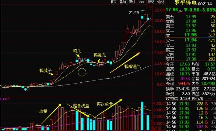 對于投資者來說5日線、10日線放量上穿60日平均線形成鴨頸部時買入,在鴨嘴部附近成交量芝麻點一帶逢低買入。當股價放量沖過鴨頭頂瞬間時介入。