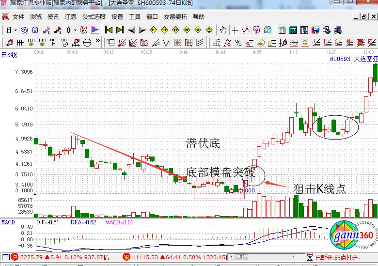 所以潛伏底是大家可以建倉的一個好時機,當潛伏底向上突破的時候,就是值得投資者馬上跟進的時刻。這樣在形態突破之后,才不會錯過未來強勁有力上升走勢的利潤空間。