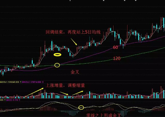 如上圖所示,股價在經過了長期下跌之后,已經處于相對的低位了,之后股價止跌逐步緩慢回升,隨后股價就開始了一波稍強的漲勢,伴隨著明顯的放量,市場人氣開始聚焦,而剛剛止跌走平的60日、120日均線開始有上行趨勢,之后形成金叉,顯示趨勢有所反轉。