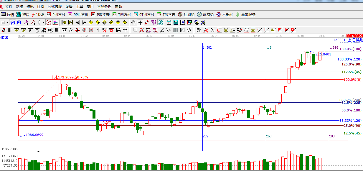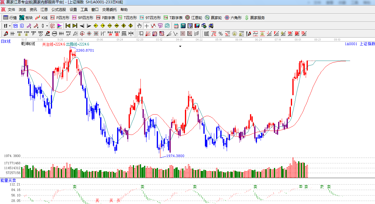 ★依據(jù)贏家江恩系統(tǒng)波段百分比提示:指數(shù)再次強(qiáng)勢上漲,上方阻力180度2232點(diǎn),225度,2254點(diǎn)。