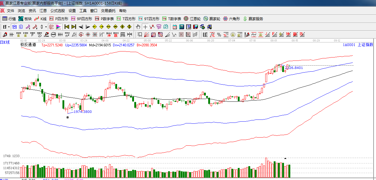 極反通道提示:指數探底回升,上方極反通道外軌線阻力2242點。
