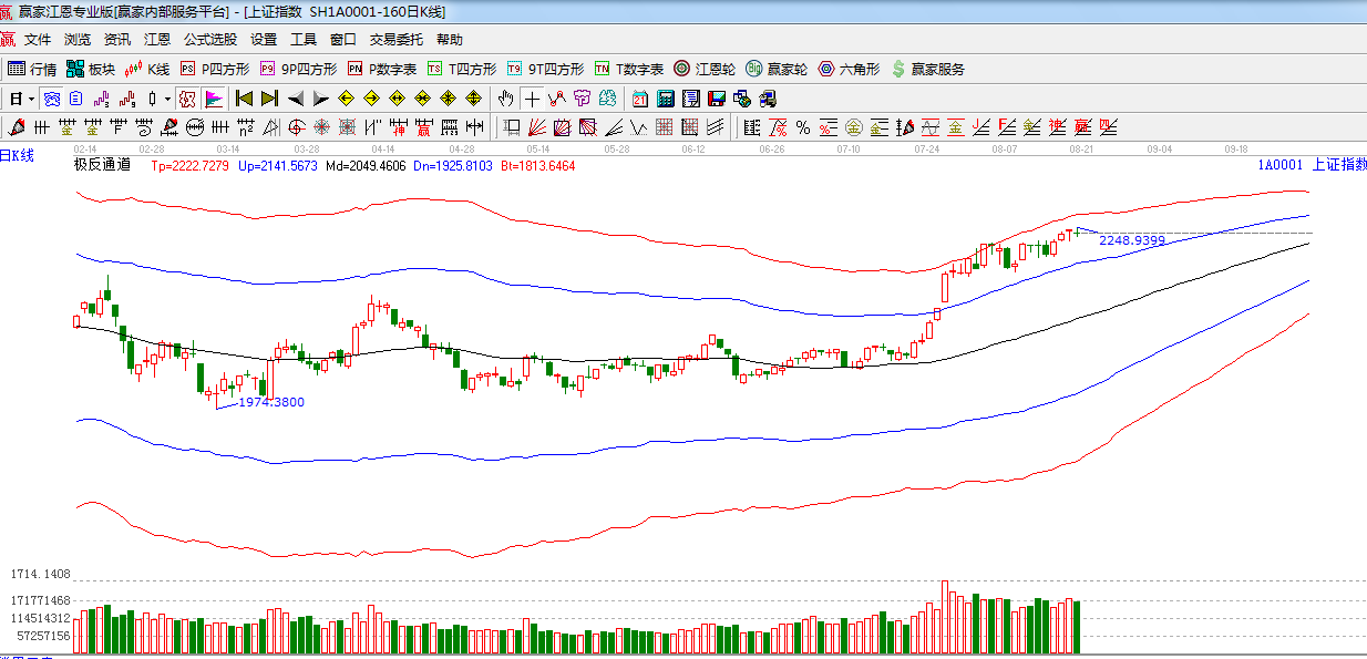極反通道提示:指數(shù)創(chuàng)出近期新高,十字星報(bào)收,由于距極反通道紅色外軌阻力2260較近,短期謹(jǐn)慎為主。