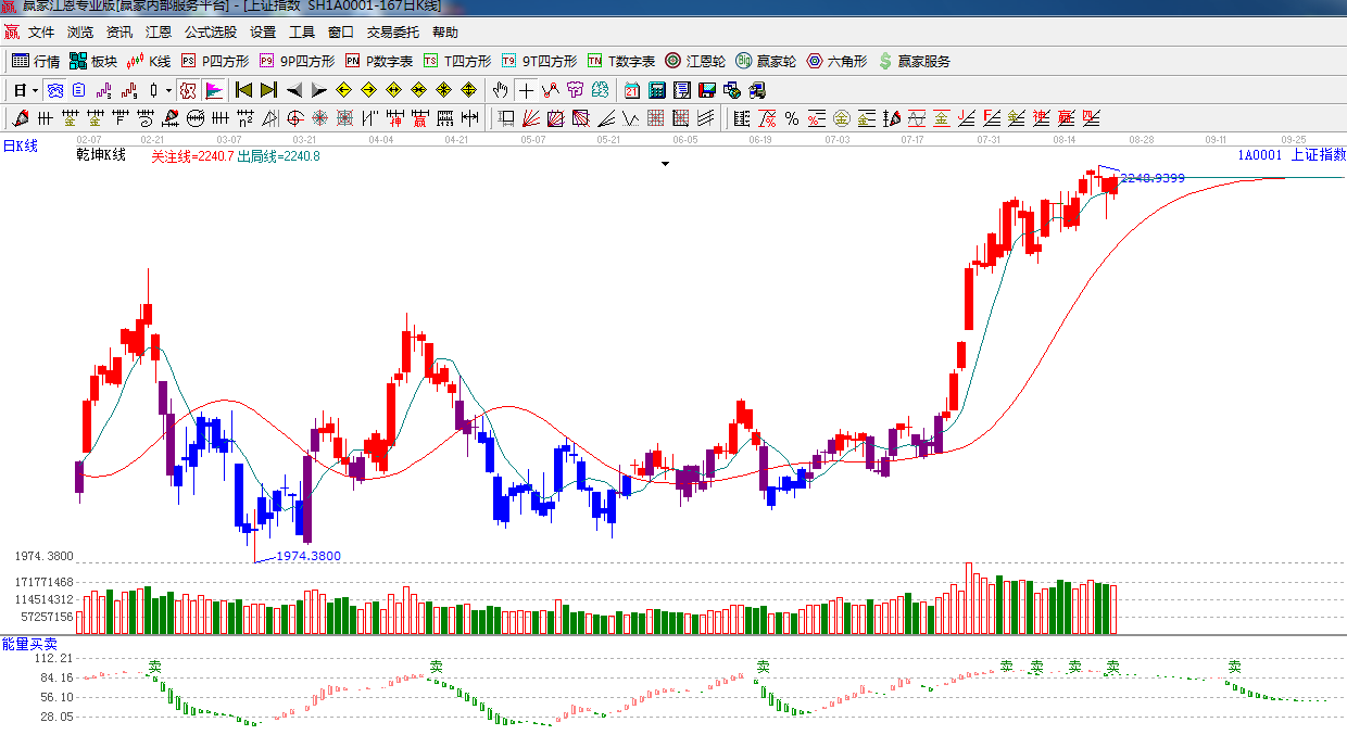 ☆依據贏家江恩系統能量買賣提示:處于高位超買位置,多空轉換節點處,綠色柱子加長,短期謹慎。