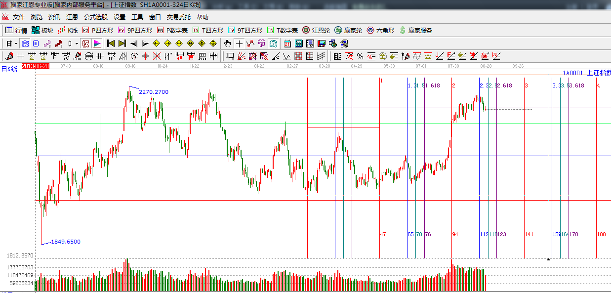 ☆依據(jù)贏家江恩系統(tǒng)波段百分比提示:周三大盤在六角形90度角度線2210一線下方,縮量震蕩,短期如不能收復(fù),將去2170點(diǎn)尋求支撐。