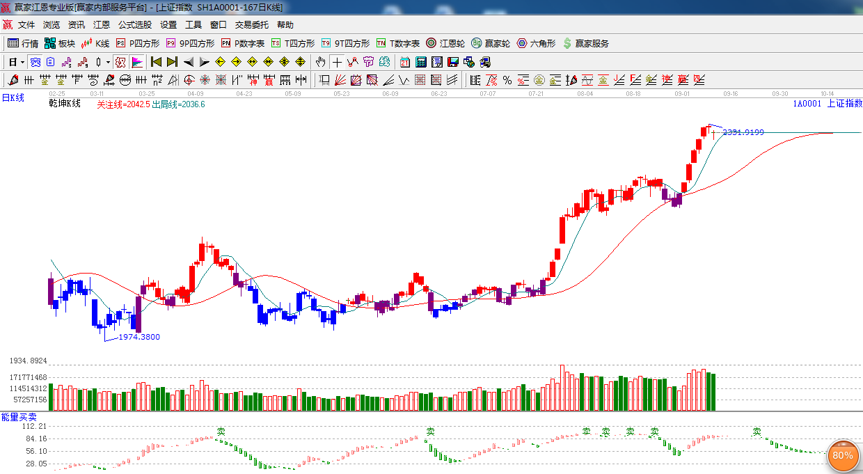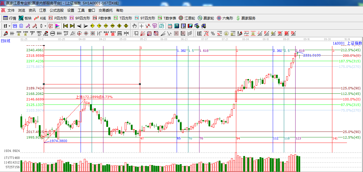 ☆依據贏家江恩系統黃金時間周期線提示:自上周五9月5日的時間窗口,再次收陰十字星,短期震蕩調整或將繼續。