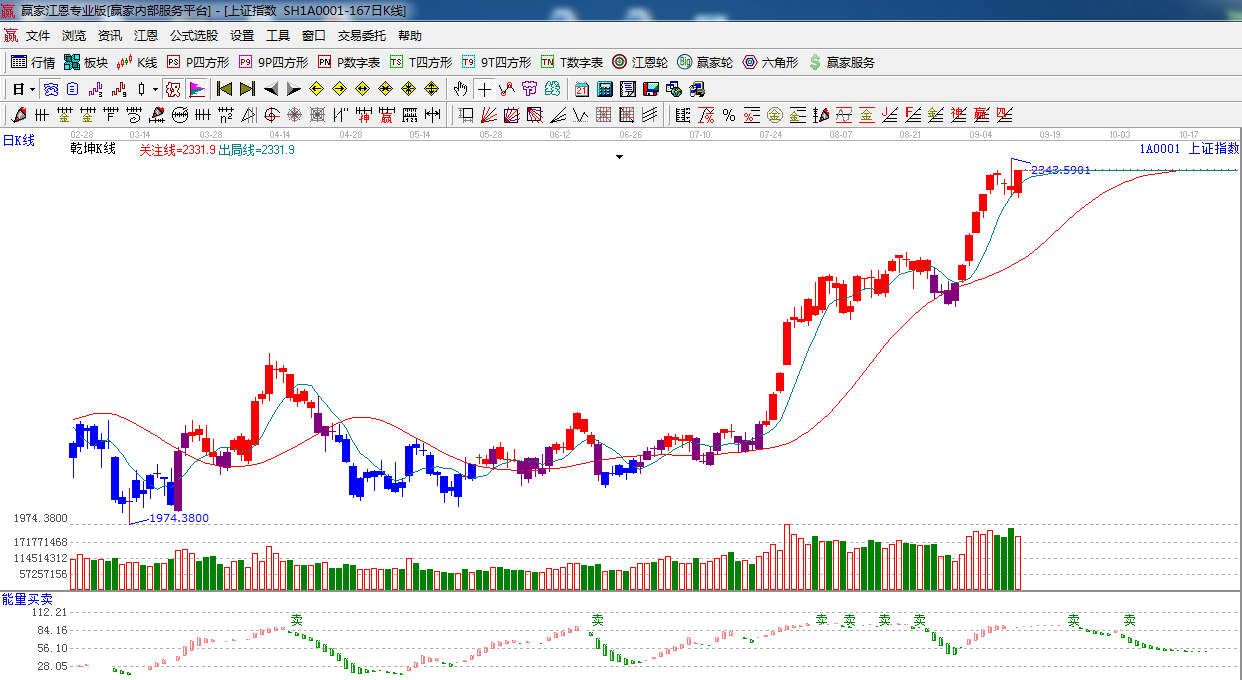 江恩看盤綜述:依據贏家江恩技術工具分析得出:周五午后指數一路震蕩攀升,再次以小陽線報收,緩解了市場緊張的氣氛,但隨著獲利盤的積累以及上證指數逐步逼近2340點—2360的拋壓區,預計短期震蕩幅度和頻率都或將加劇。操作上,投資者切忌盲目追高和頻繁調倉換股,可適當降低倉位。