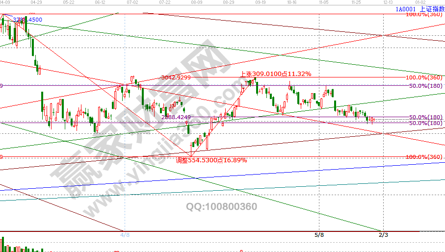 指數(shù)早盤觸及江恩箱3/8空間分割位2870點止跌,全天圍繞下降1*1線震蕩,隨著時間窗6號臨近,市場盤中震幅收斂到極致方向選擇在即,空間上,指數(shù)向上突破3*2線2914點則順勢做多,反之如跌破2870點快速下行挖坑,在江恩箱2*1線2810支撐尋找機會,5、6號兩個交易日重點跟蹤方向選擇,跟隨市場做好倉位應(yīng)對。5號盤中壓力2894、2911點,盤中支撐2860-2870位置。操作策略,指數(shù)生命線下弱勢區(qū)域,倉位控制在3成,穩(wěn)健者重點關(guān)注12月6號時間窗口機會。