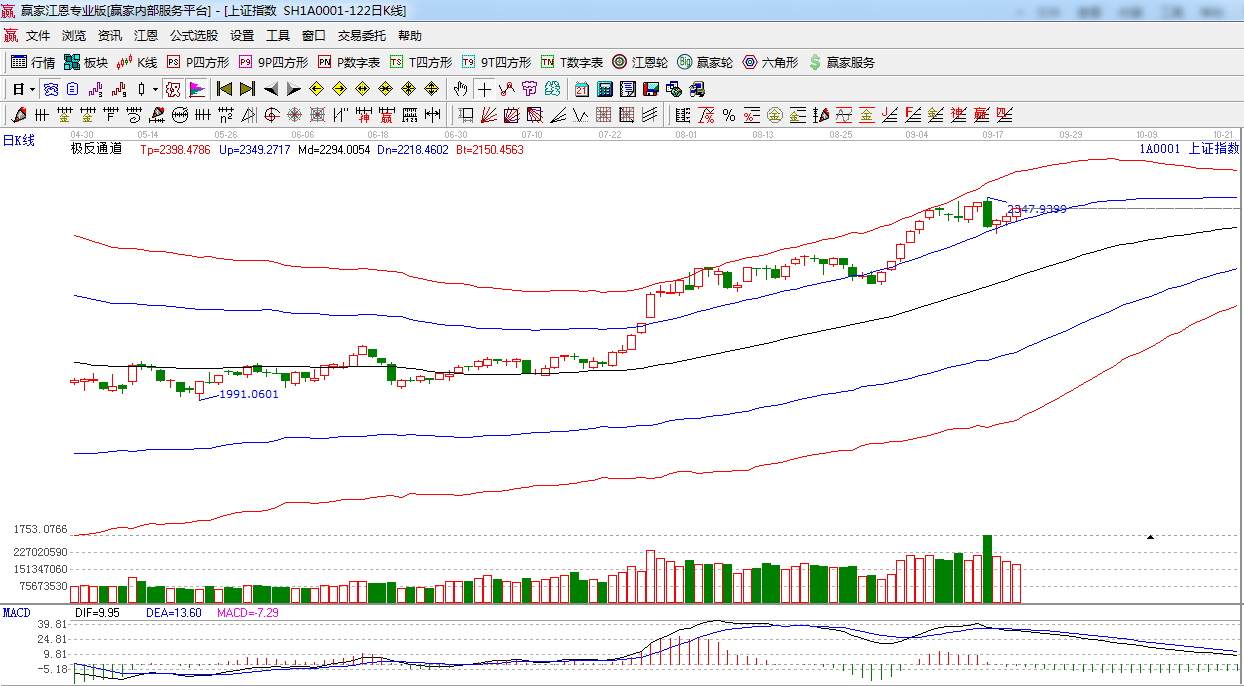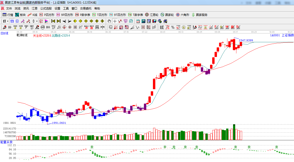 江恩看盤綜述:依據(jù)贏家江恩技術(shù)工具分析得出:午后指數(shù)繼續(xù)震蕩上揚,尾盤漲幅收窄,終盤日線出現(xiàn)三連陽,但仍在9.16日大陰線之內(nèi)包含運動,量能持續(xù)縮小,周一關(guān)注上方強阻力2340點附近,密切關(guān)注前60分鐘走勢,如上沖關(guān)注量能變化,做好倉位調(diào)配,謹防沖高回落。