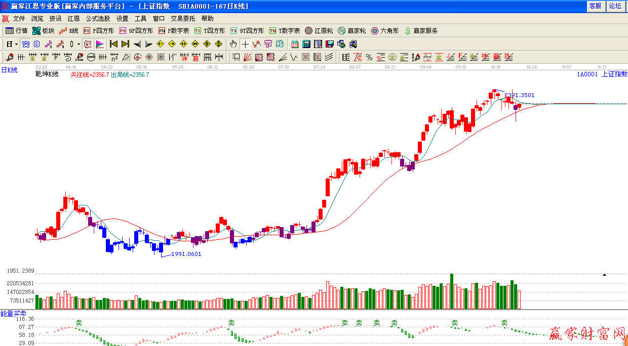 江恩看盤綜述:依據贏家江恩技術工具分析得出:今日上證指數回探江恩45度2340點后,震蕩反彈,以小陽線報 收,市場整體進入維穩期,由于今日反彈量能萎縮明顯,短期不排除震蕩反復走勢,下以時間窗口在22日。預計將會明確方向。操作上,適當控制倉位,投資者可適當挖掘低價藍籌股的補漲機會。
