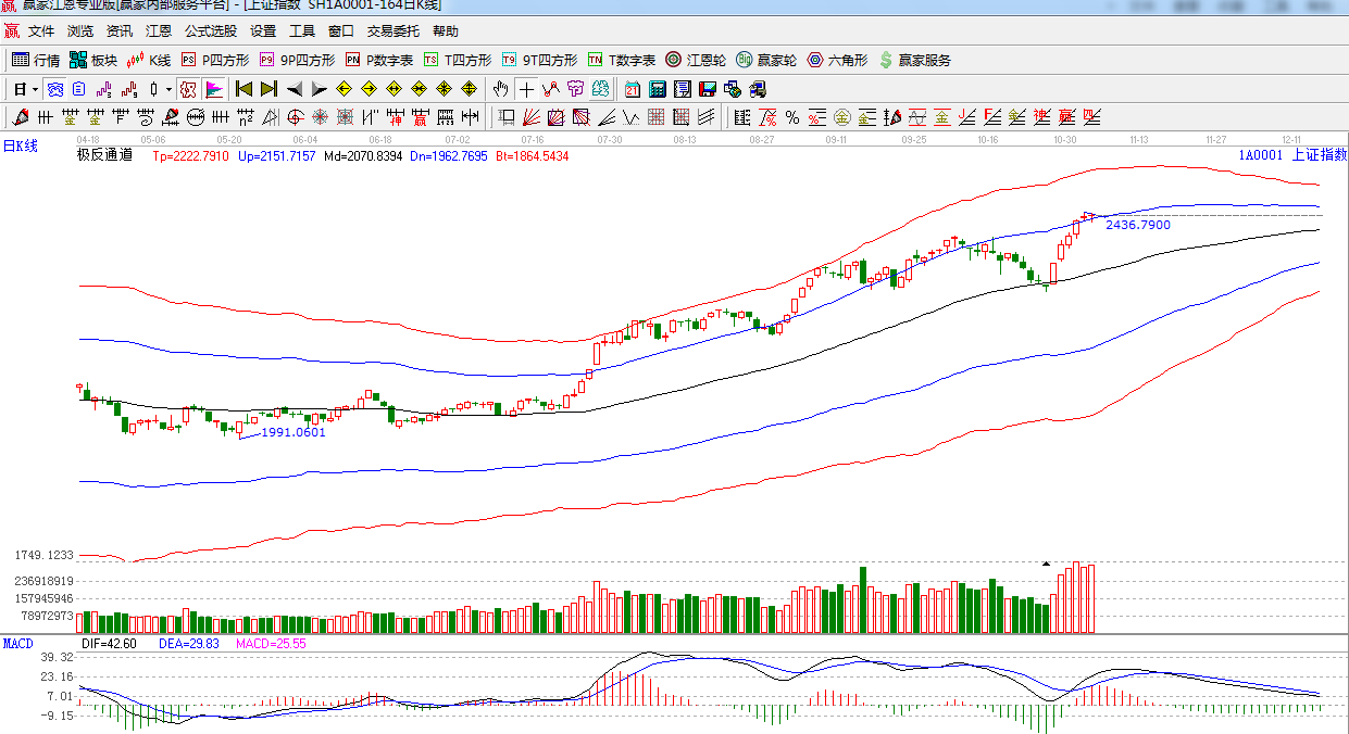 江恩看盤綜述:依據贏家江恩技術工具分析得出:大盤橫盤震蕩,再次十字星報收,指數強勢中存在震蕩可能,下方關鍵位置120度2410點,此位置整理不破指數將有進一步蓄勢上攻的可能,操作上,個股方面高拋低吸,防止震蕩分化中的個股突然下跌風險.