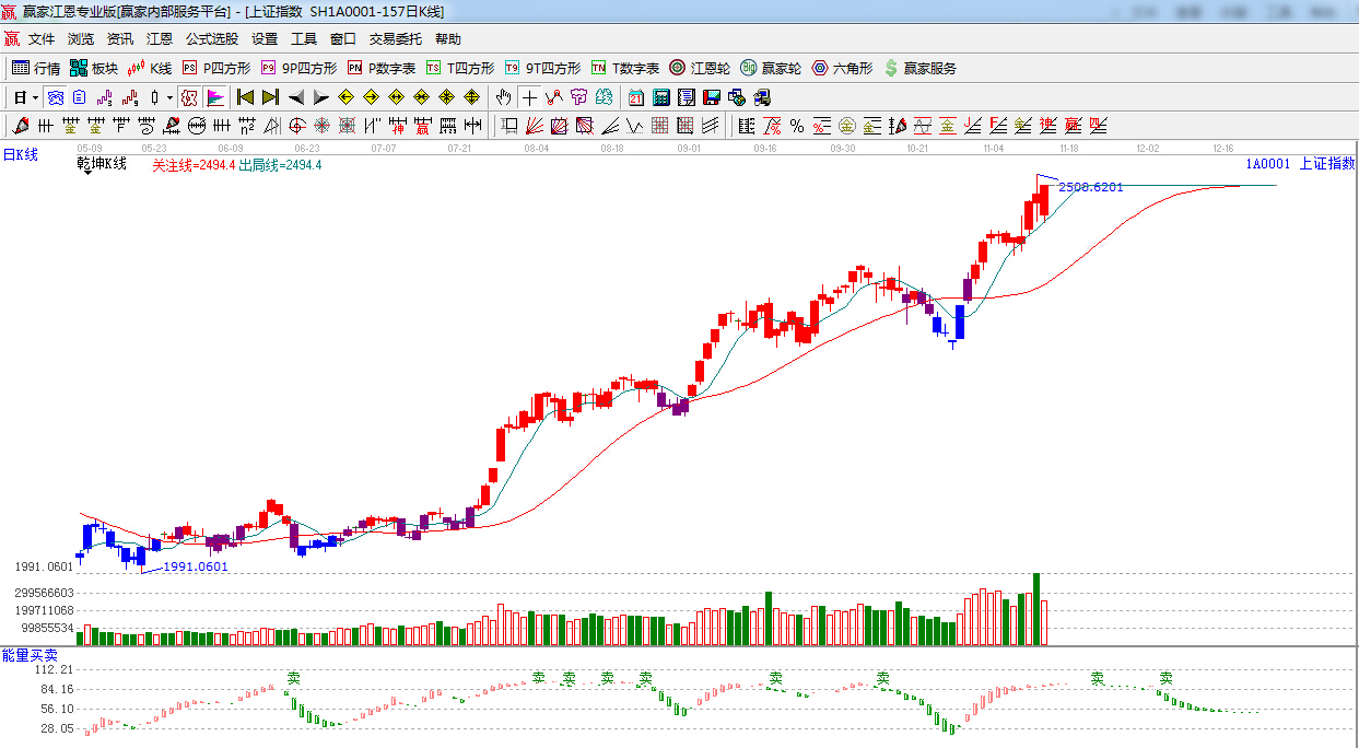 ★依據贏家江恩系統極反通道提示:回踩短周期生命線支撐,隨后縮量上揚,日線外軌線支撐是2460點,短期看多。