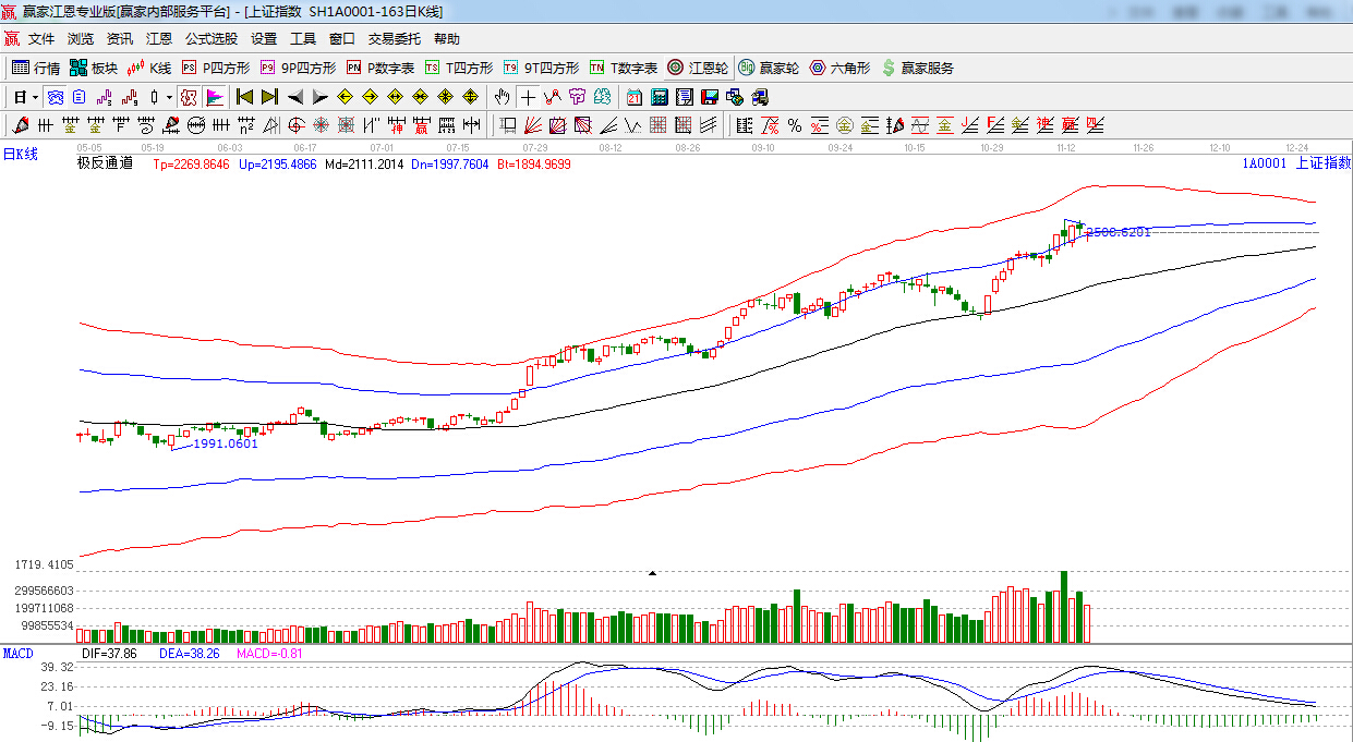 極反通道提示:圍繞藍色外軌線震蕩,T字線報收,短線看多。
