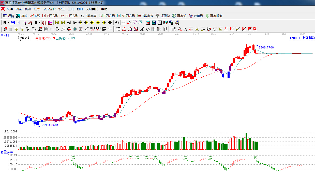 ☆依據贏家江恩系統能量買賣提示:有“賣”字出現,處于綠色看空能量柱,短線看空.