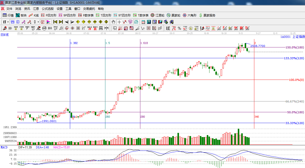 ☆依據贏家江恩系統黃金時間周期線提示:重點關注時間窗口是11月24日。
