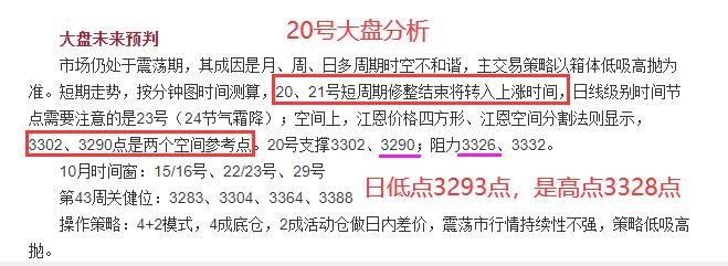 在江恩著作中,對空間速率、波動折返測算中使用算法之一是江恩八分法。以滬指為例,贏家江恩團隊9月份以江恩八分法測算,空間上精準測算出9月11日低點3220點、9月30日低點3202點(百分比測算3204);其中9月高點3350,以及今日支撐3290(低點3293),壓力3326(高點3328)的計算是運用江恩價格四方形,相對比3千多點的指數,誤差最大是3個點,比率是0.001%,已極度靠近何時何價。9月第一波3220---3350,目前是處于9月第二波3204百分比折返的空間結構內,目標參考位已在10月10號贏家江恩培訓課中進行解讀,并且市場已靠近所提點位,相信贏家學員早已按既定策略做好了應對。