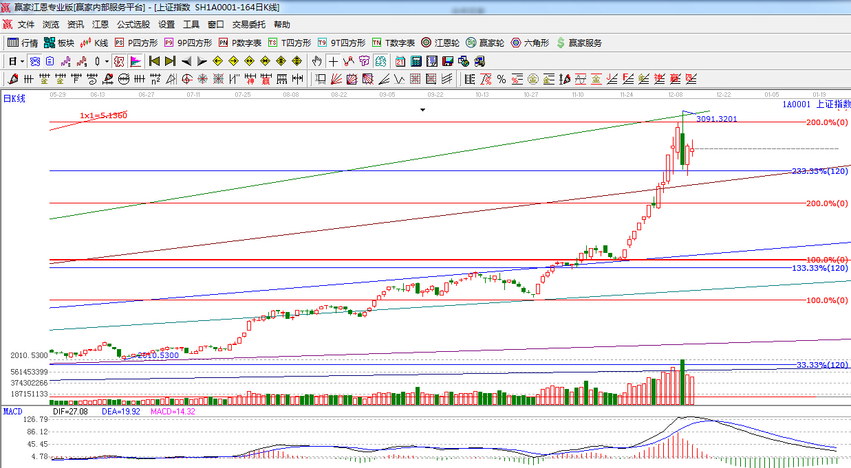 江恩看盤綜述:依據贏家江恩技術工具分析得出:周四由于受金融權重股的拖累,全天震蕩收星,量能持續萎縮,預計短期市場或以震蕩的方式來解決指數的回調,下方強支撐2830—2800區間,對于牛市起步階段,回調恰好是給我們低吸的機會,操作上,繼續留意漲幅落后的低估藍籌,如特高壓、環保、電子信息等。