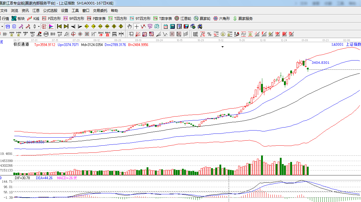 江恩看盤綜述:依據贏家江恩技術工具分析得出:今日滬深兩市表現疲弱,滬指低開下探江恩90度3188點支撐,隨后維持低位震蕩,金融股嚴重分化,題材股活躍,江恩90度支撐3188點,此位置不破,短期高位震蕩格局有望延續。但整體大勢依舊向好,操作上,合理控制倉位,繼續關注國企改革、一帶一路等近期熱點,另外,傳媒、軍工等題財股也可適關注。