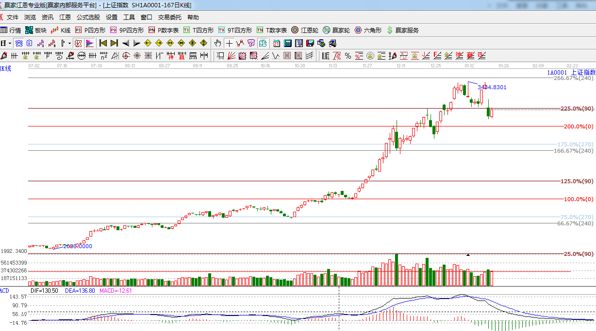 ☆依據贏家江恩理論系統乾坤K線提示:紫色警示k線,反彈未能收復紅色關注線,短期謹慎為主。
