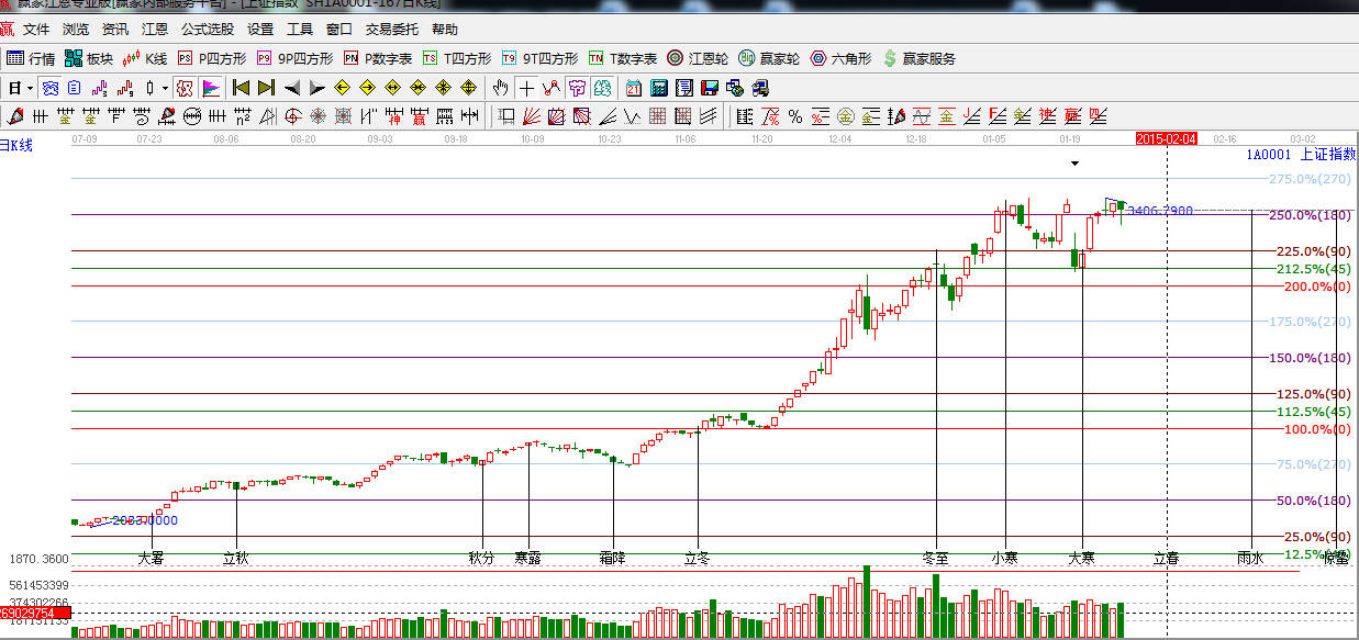 江恩理論系統黃金時間周期線提示:下一時間窗口“立春”。