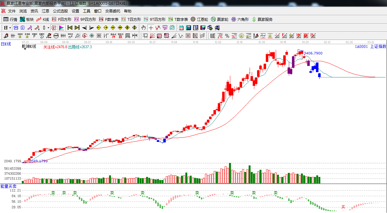 ☆依據贏家江恩理論系統乾坤K線提示:處于藍色休息區域,謹慎對待,