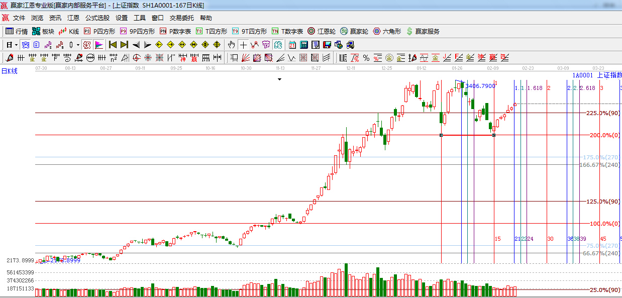 ★依據贏家江恩理論系統黃金時間周期線提示:2月17日是節前提到的時間窗口,留意盤面變化,下一時間窗口0.618,2月28附近。