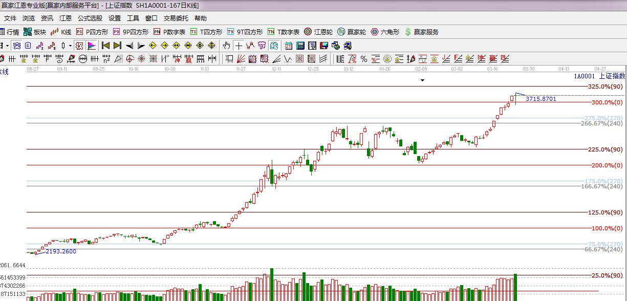 江恩理論系統黃金時間周期線提示:3月23日滬指強勢不改,下一時間窗是3月30日。