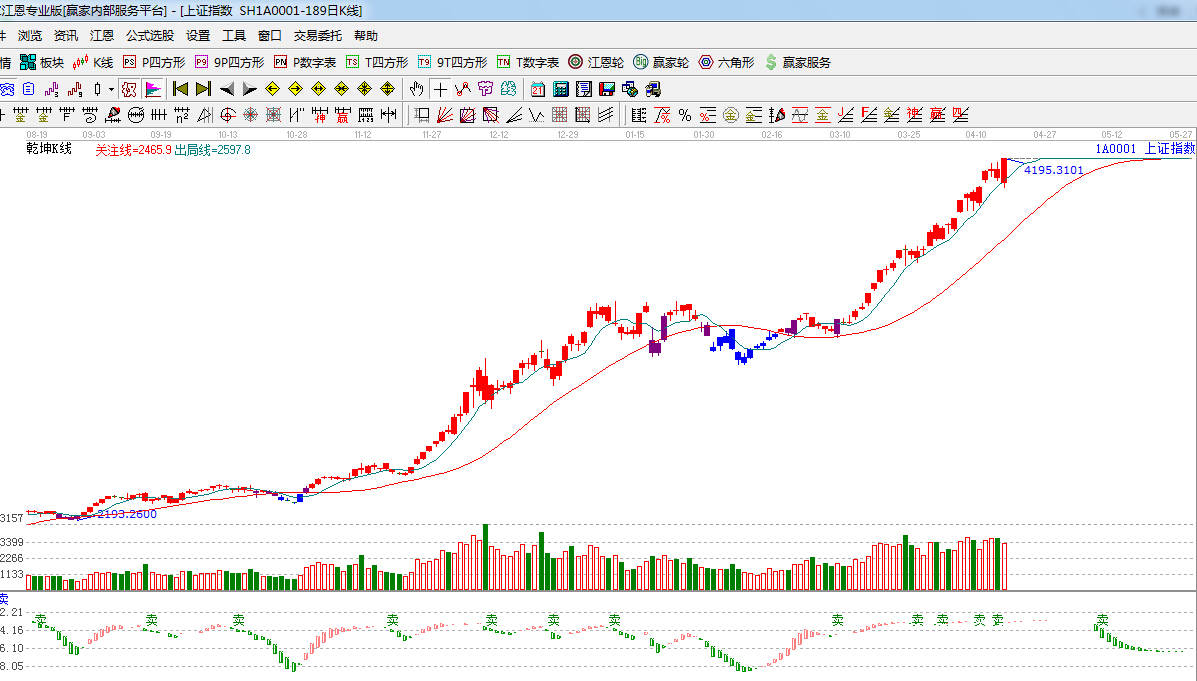 ★依據贏家江恩理論系統乾坤K線提示:紅色可操作區域,綠色線上方,綠色線不破,繼續看多。