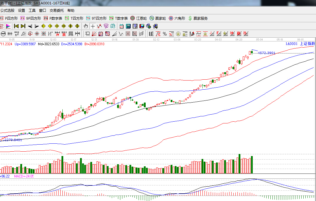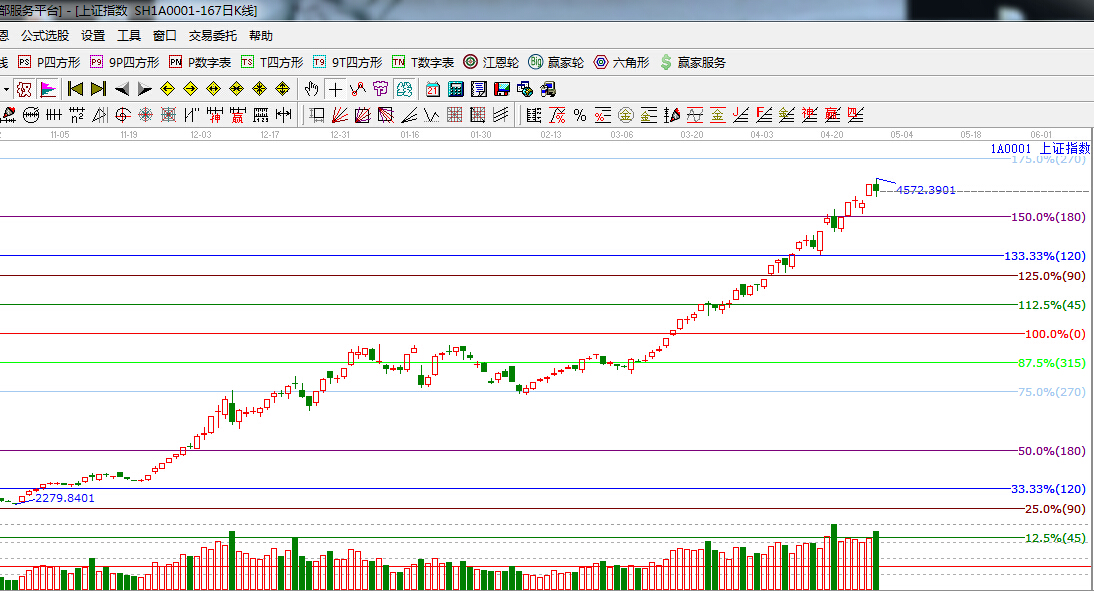 江恩看盤綜述:依據贏家江恩技術工具分析得出: 周二滬深兩市震蕩加劇,盤面顯示整體市場分化嚴重,藍籌股相對較強,創業板出現下跌,在滬指連續的逼空的情況下,又恰逢五一假期,短期震蕩調整實屬正常,下方極限位置是江恩180度4300點,震蕩整理之后仍會繼續向上攻擊江恩270度4700附近。操作上,逢低仍是調倉以及布局良機,金融股首選銀行、券商;另外,煤炭、有色、電力、化工也可逢低關注。