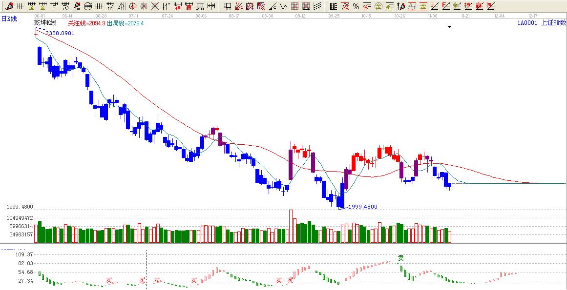 ☆依據贏家江恩系統乾坤k線提示:大盤處于藍色區域,多看少做。