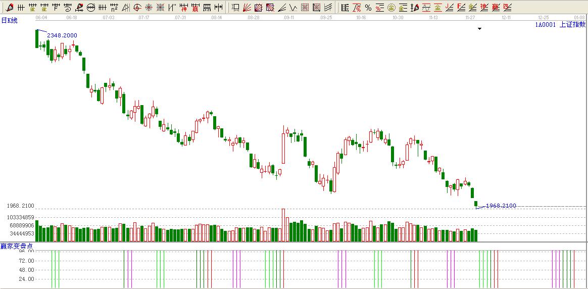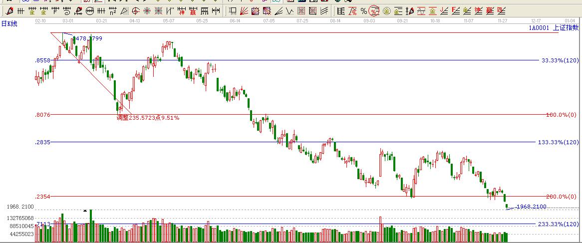 ☆依據(jù)贏家江恩波段百分比延伸線提示:大盤破位0度位置。這里多空分界位置下一支撐在120度位置1928點(diǎn)。0度位置不過看空。休息